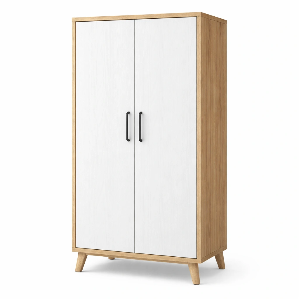Armario de madera y tablero de partículas blanco con puertas dobles