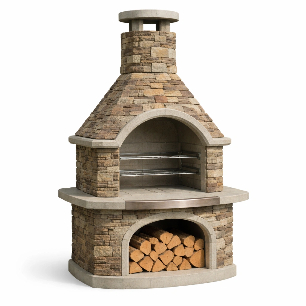 Barbacoa de piedra natural para exterior con parrillas de acero inoxidable